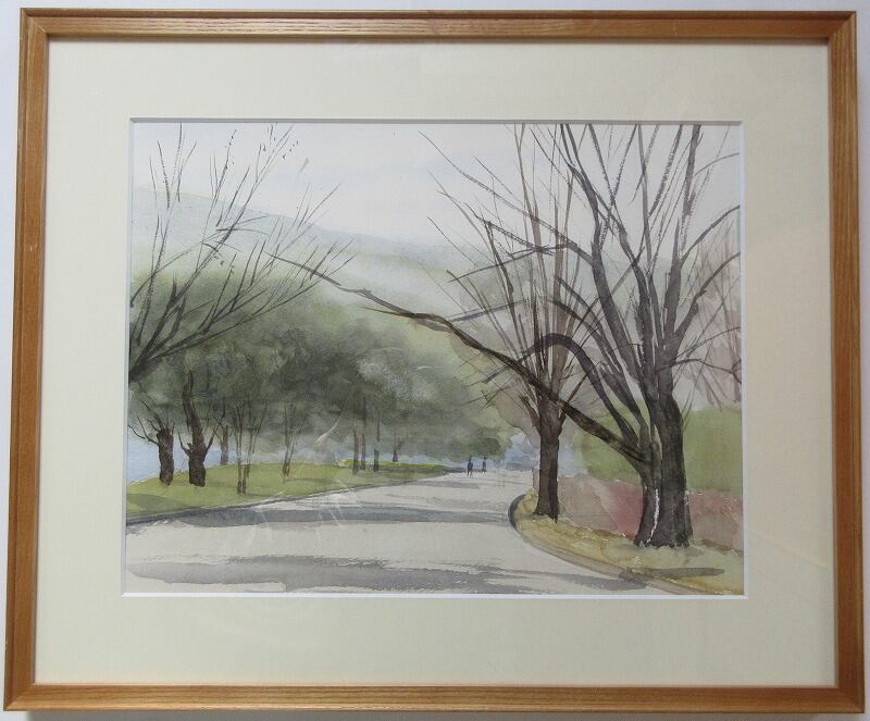 毎朝の散歩道です。雪景色も描きたいのですが、ここは雪が降りません。